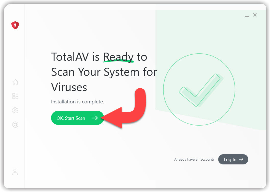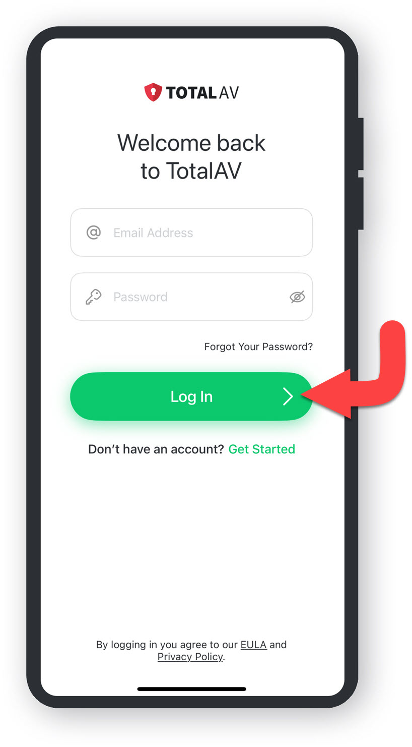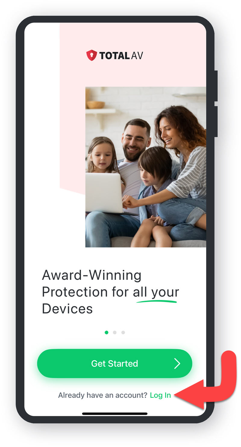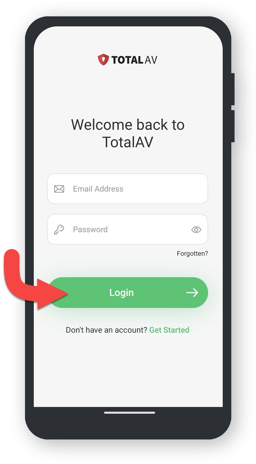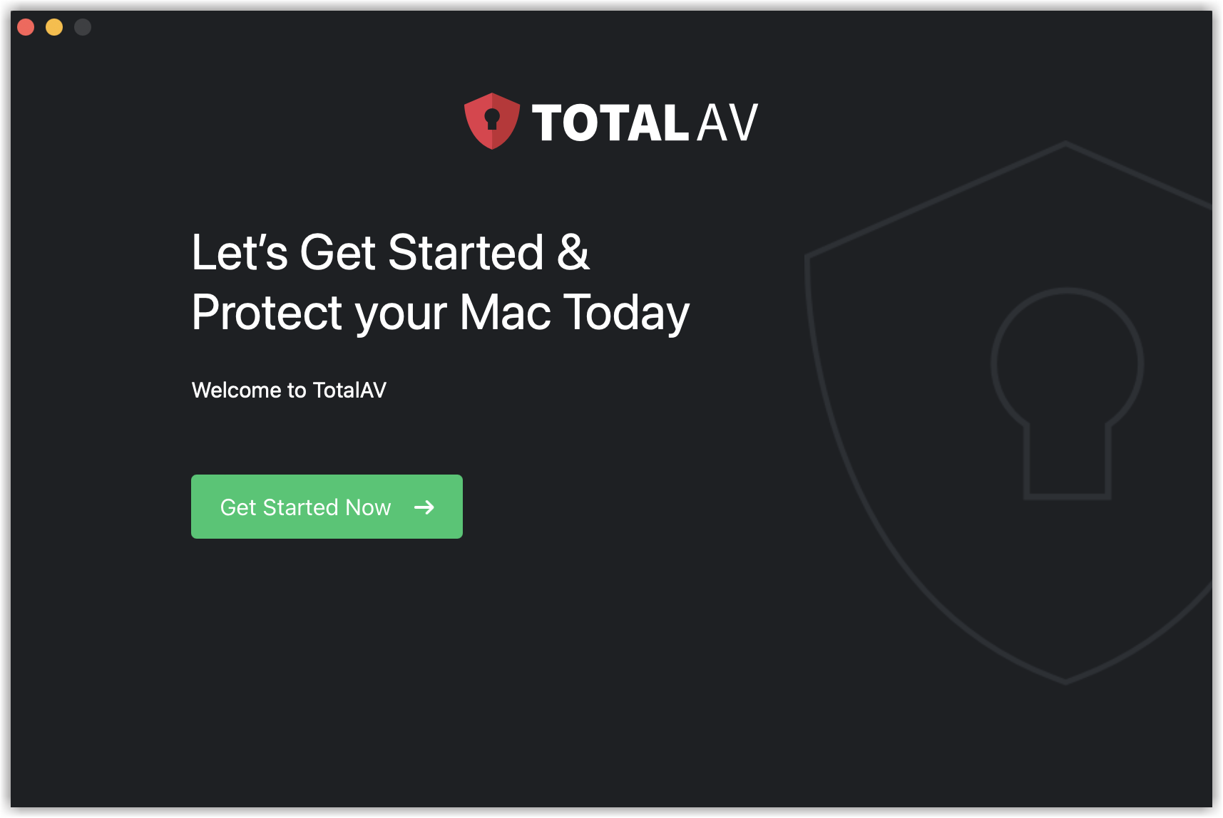 Klicka på Kom igång nu för att logga in på TotalAV.