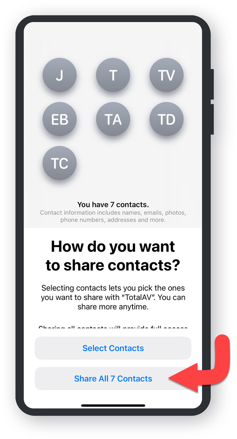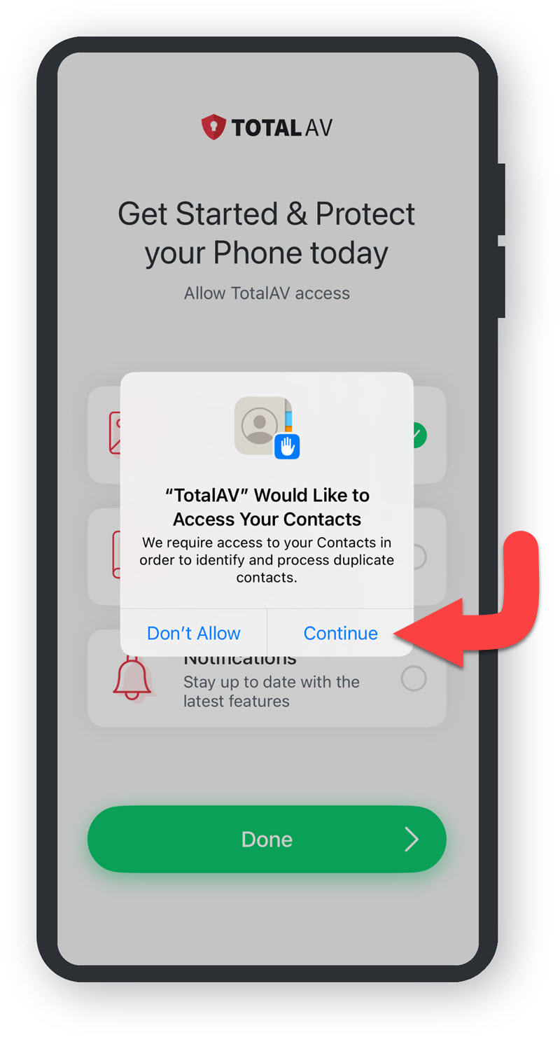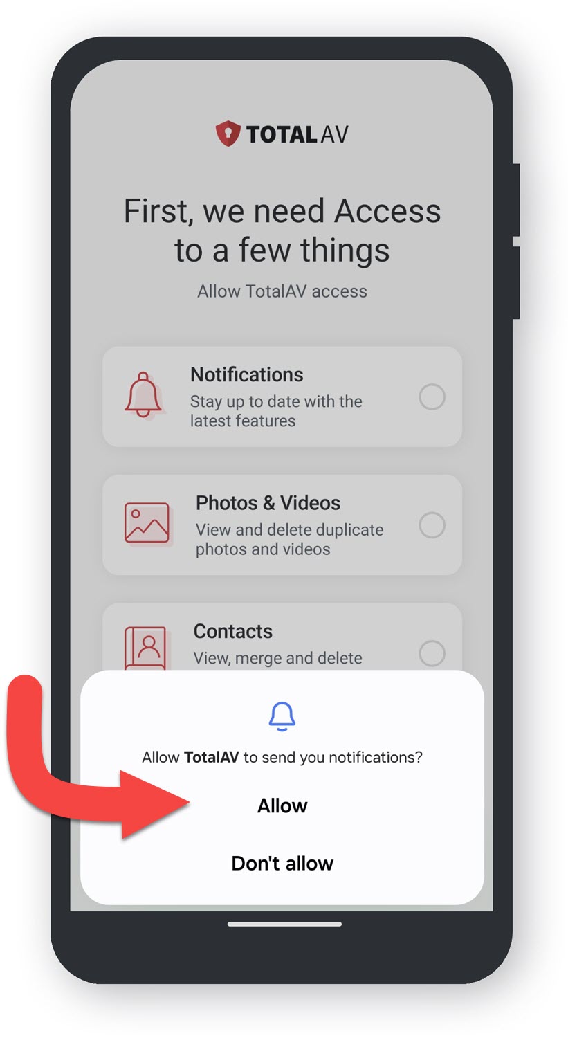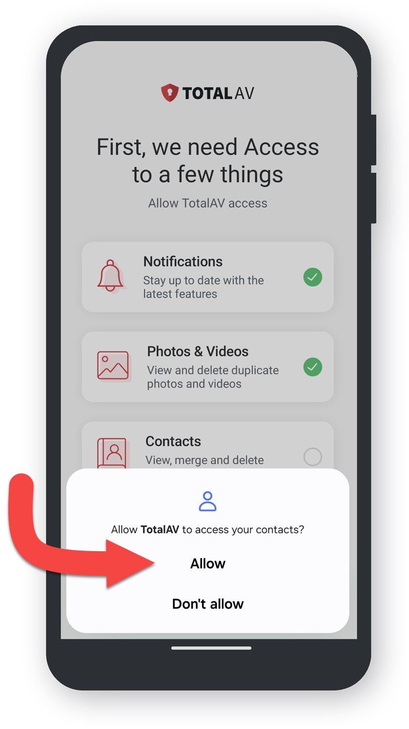 • Tryck på Tillåt så att TotalAV kan få åtkomst till dina kontakter.
