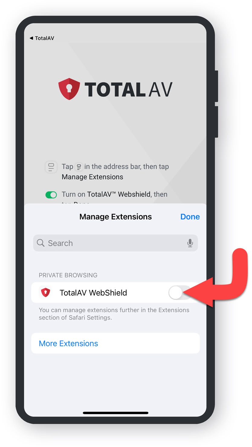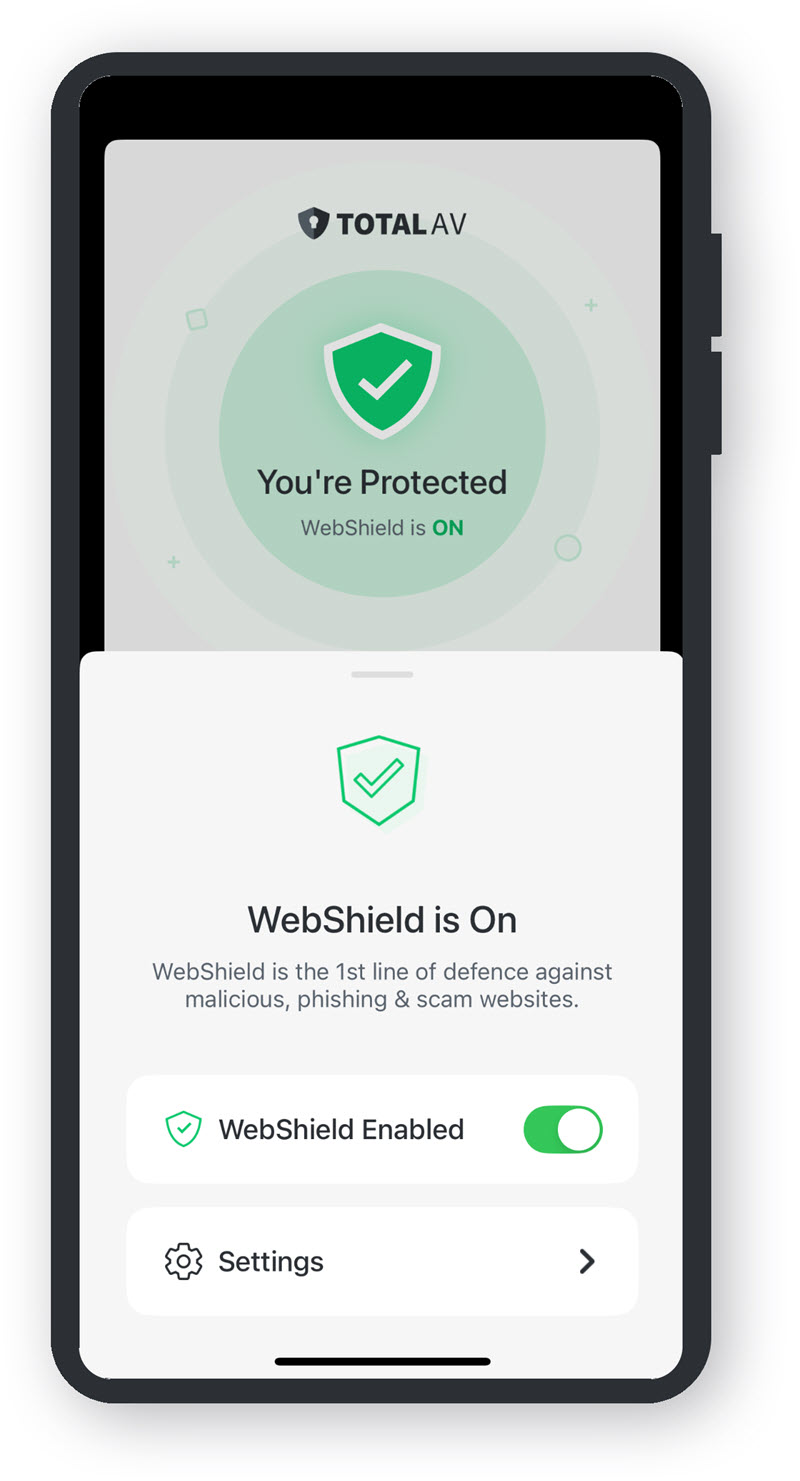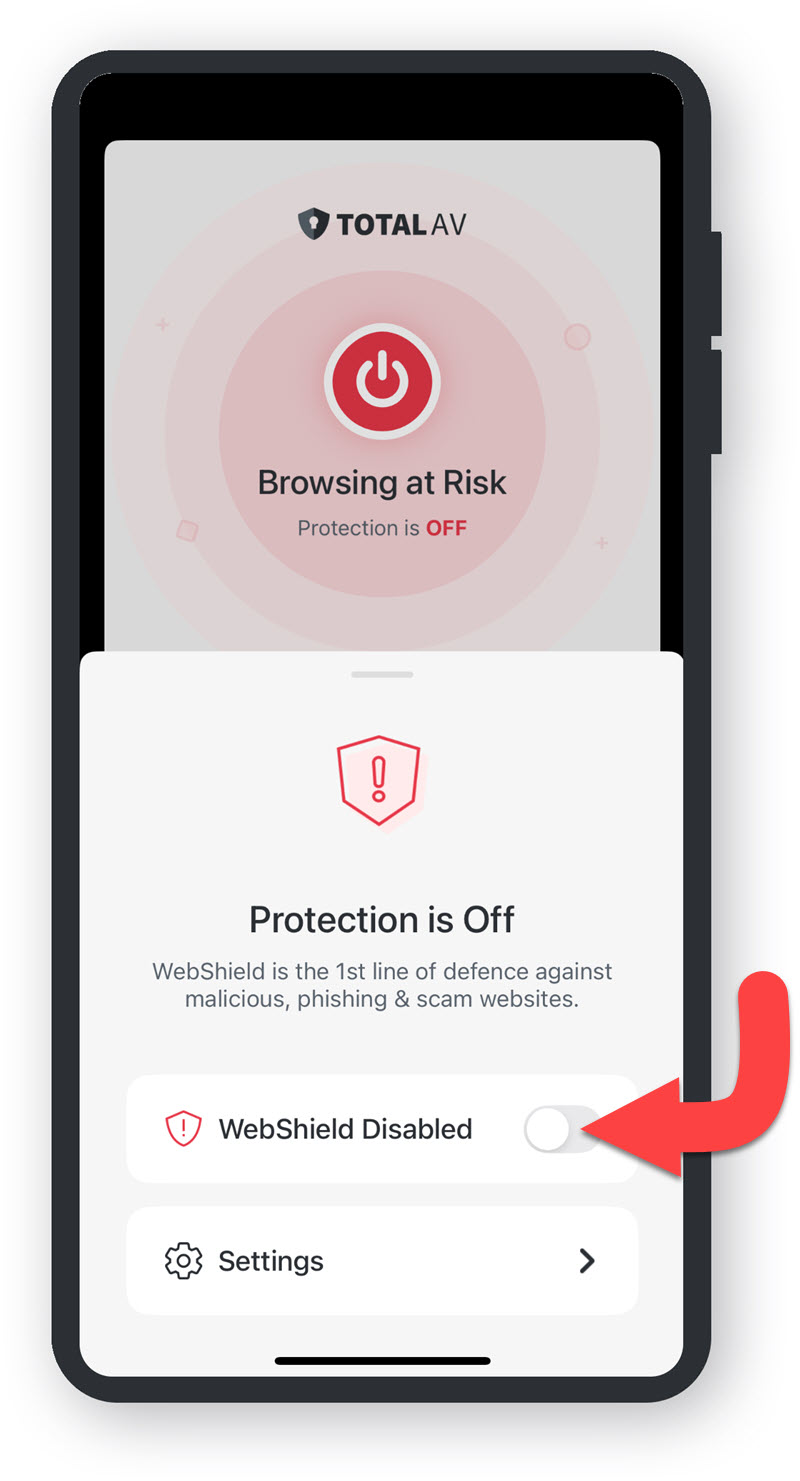 • Tryck på växlingsknappen för att aktivera TotalAV Webshield.