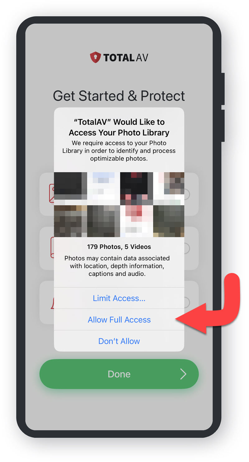 • TotalAV vill ha tillgång till ditt fotobibliotek