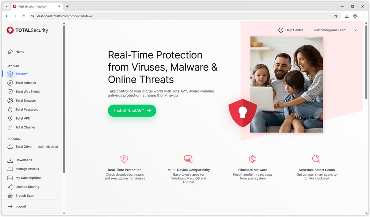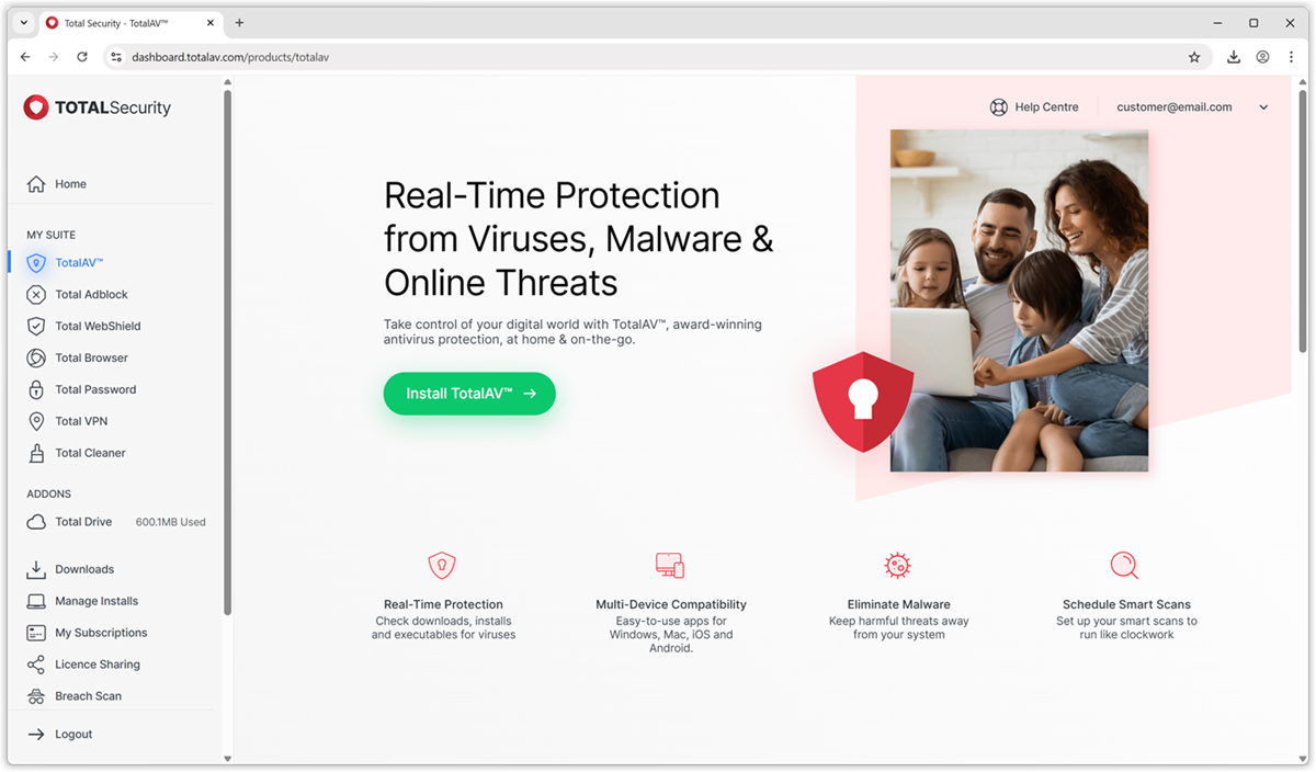 För att ladda ner TotalAV måste du gå till din Onlineportal och installera det genom att klicka på knappen Installera TotalAV.