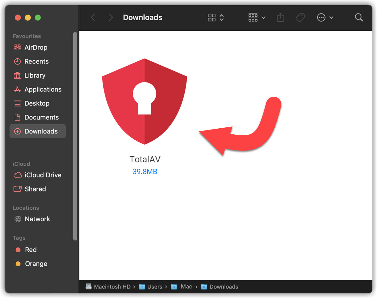Öppna den nedladdade filen i webbläsarens nedladdningsområde eller genom att gå till din nedladdningsmapp i Finder och dubbelklicka på filen totaladblock.dmg.