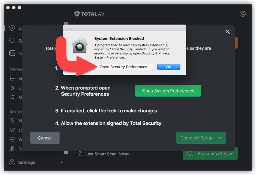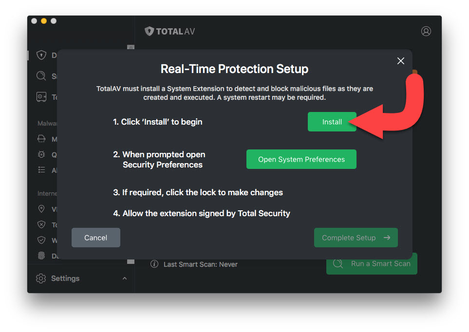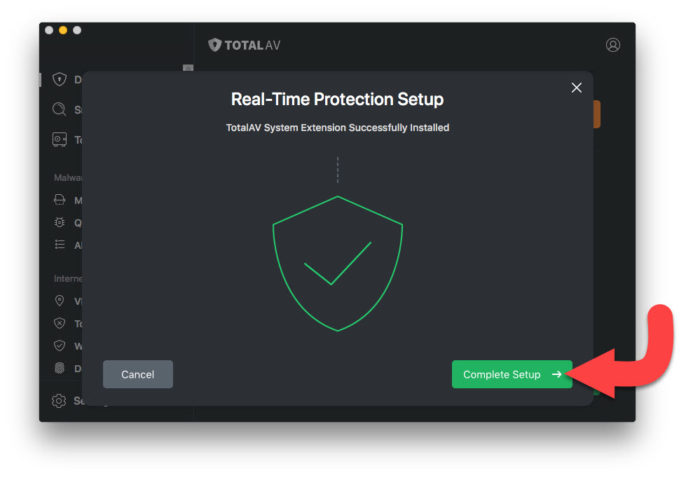 • Gå till TotalAV-applikationen och klicka på Slutför installationen.