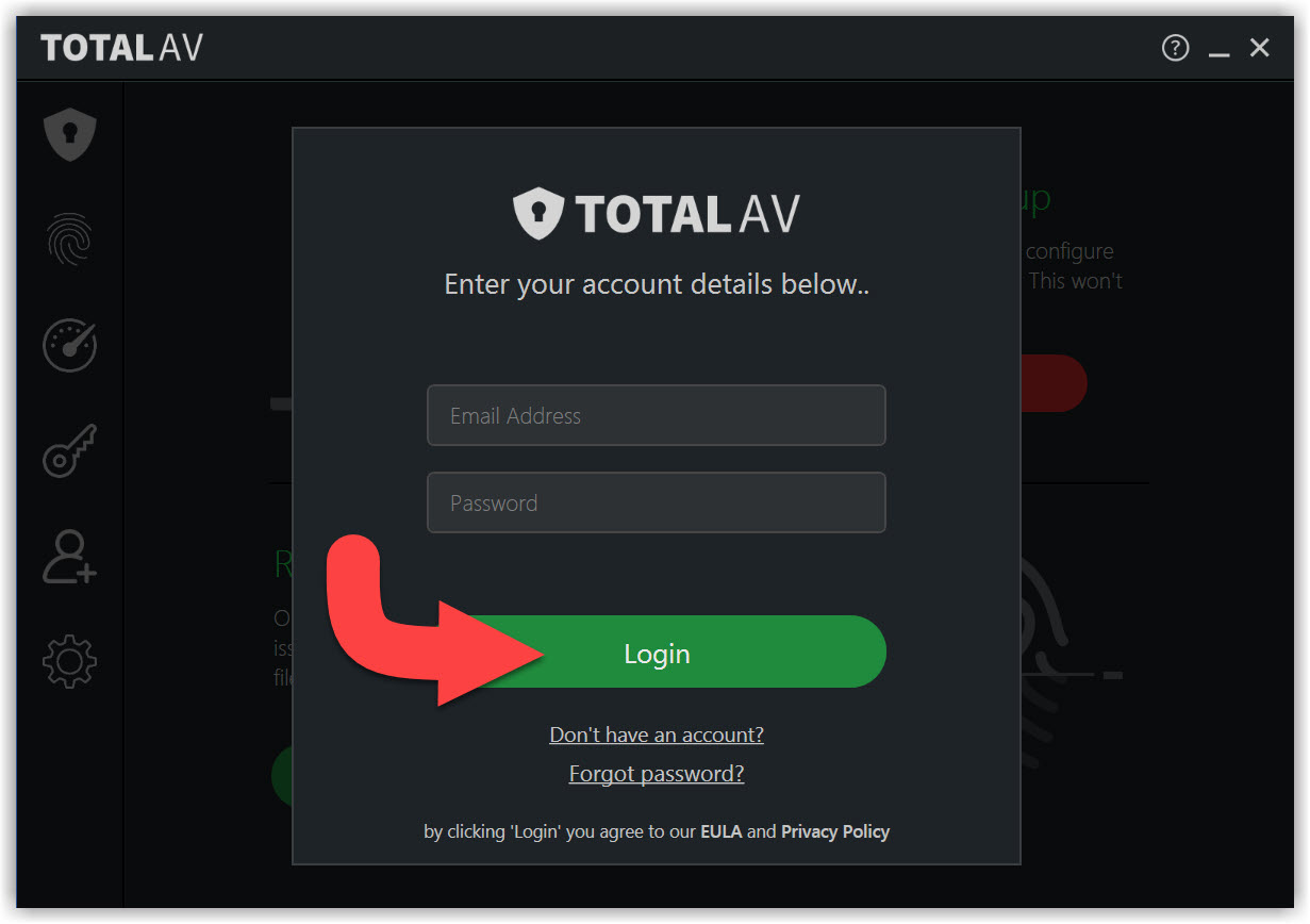 Ange dina TotalAV inloggningsuppgifter och klicka på Logga in.
