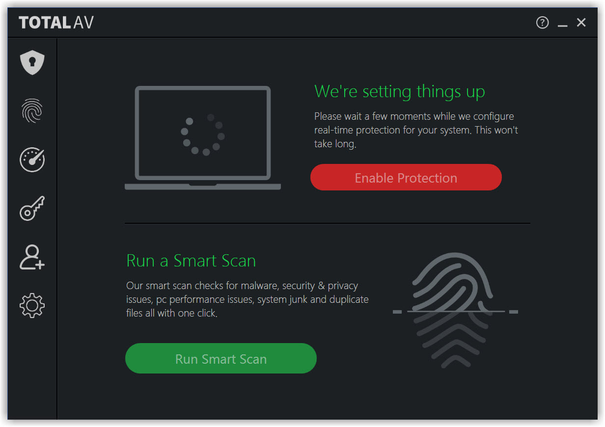 Realtidsskydd aktiveras några sekunder efter att TotalAV är helt installerat, eller så kräver det att du klickar på Aktivera realtidsskydd.